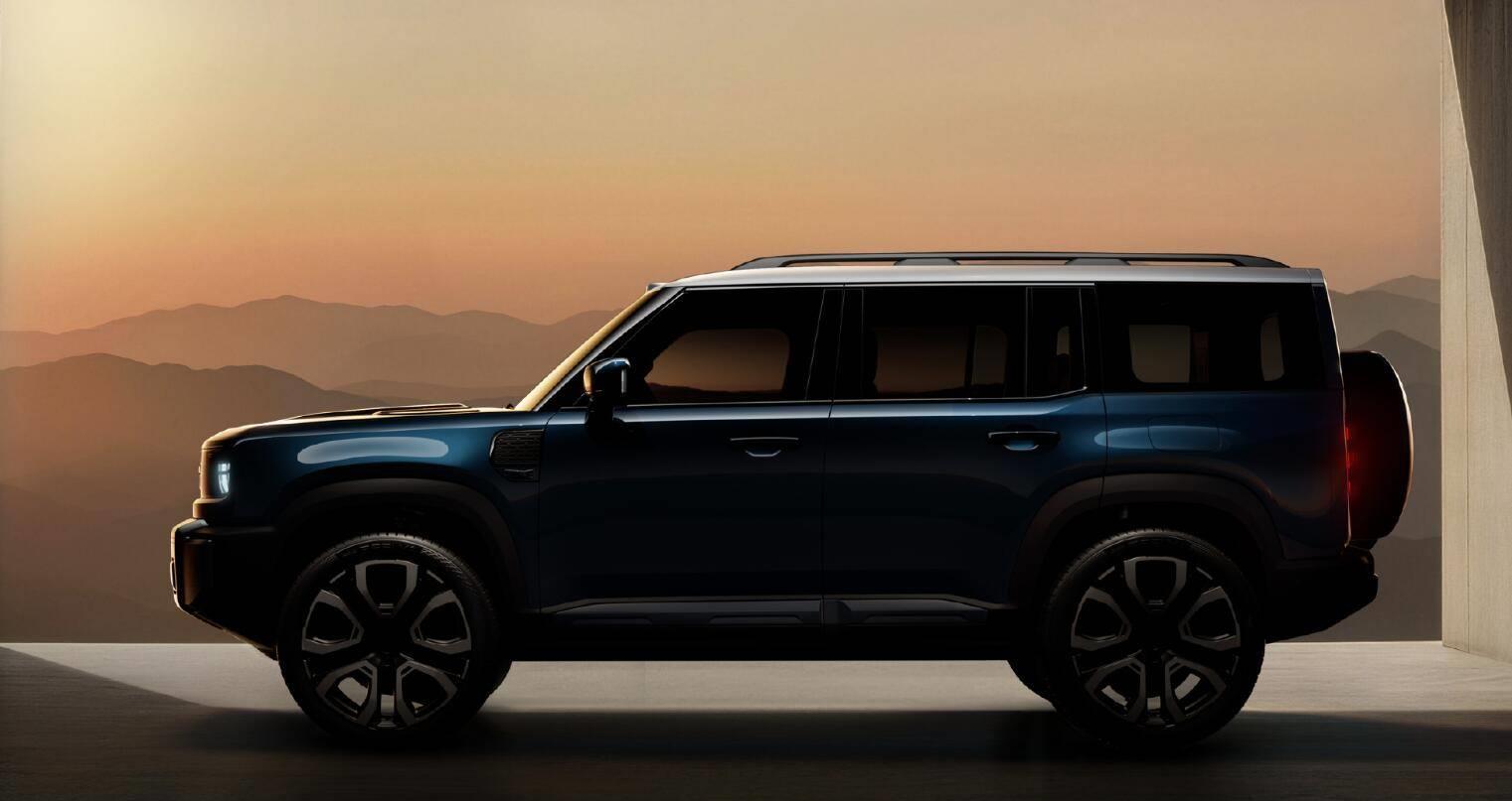 车身将配备哑光黑色车顶行李架、外挂备胎以及竖向尾灯造型,典型的越野范儿。目前,新车尺寸、配置信息官方公布得不太多。据悉,新车将会搭载自研的GVMC动态控制系统以及AI智能四驱。